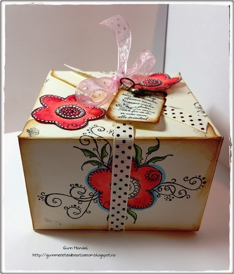 I stamped the flower direct on the box`s all 4 sites, then I stamped the